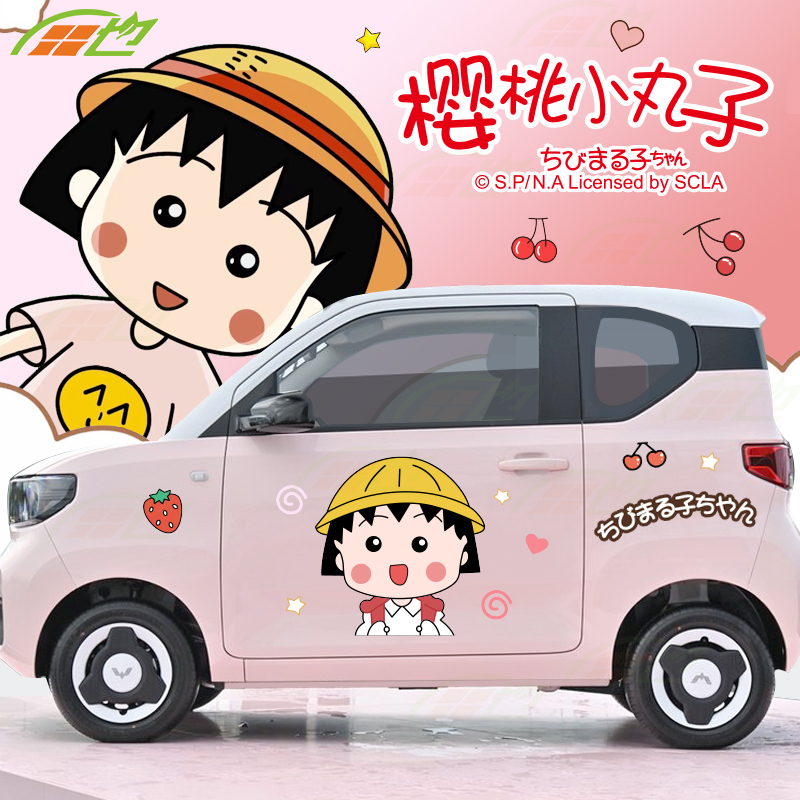 樱桃小丸子汽车贴纸五菱宏光miniev车身车贴QQ冰淇淋车门装饰贴画热门设计联盟服务商