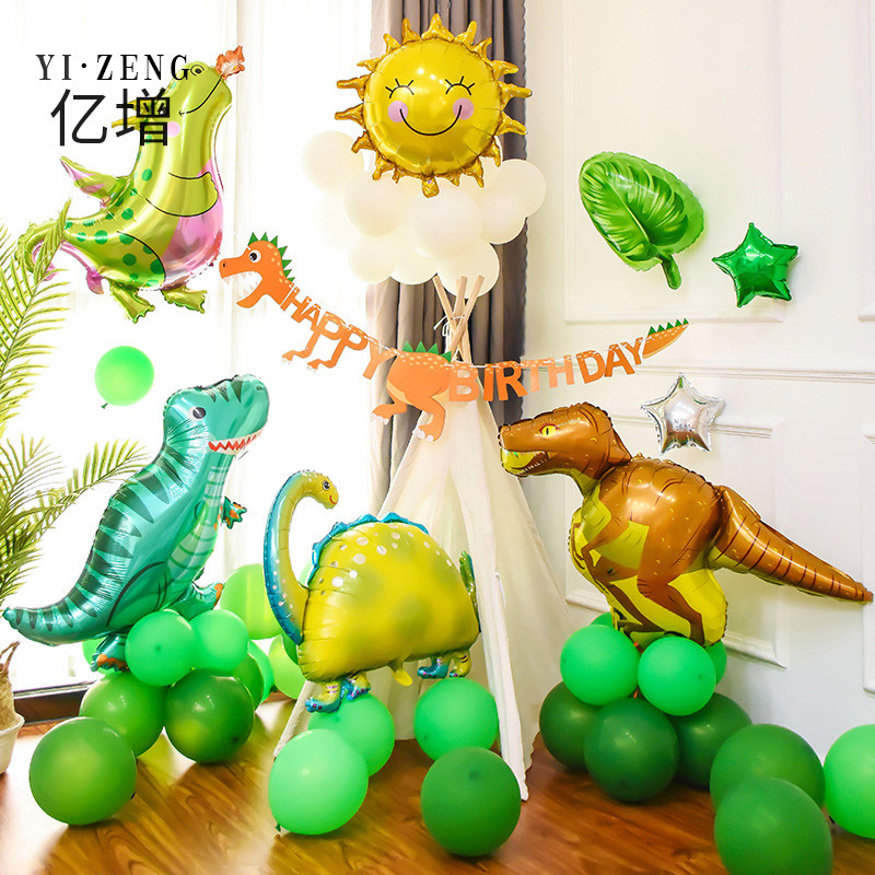 男孩周岁生日布置装饰背景墙充气球恐龙汽球字母拉旗横幅套餐气球热门设计联盟服务商