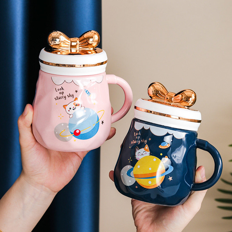 ins风卡通陶瓷水杯子可爱少女马克杯带盖勺创意办公室咖啡早餐杯热门设计联盟服务商