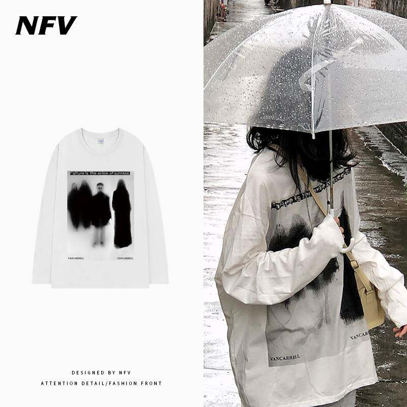 早秋ins高街设计感印花长袖T恤女宽松欧美嘻哈学生打底纯棉上衣潮热门设计联盟服务商
