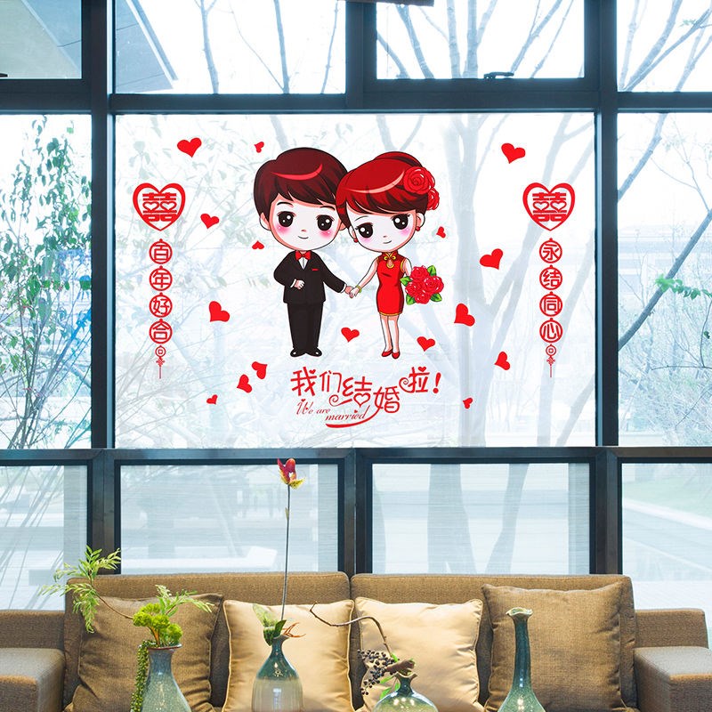 结婚喜字窗花婚房装饰婚礼布置剪纸卡通无痕胶贴纸玻璃贴婚庆用。热门设计联盟服务商