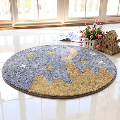 儿童房女生布置方块套装展览大红公地毯半圆形咖啡色家用米色。热门设计联盟服务商