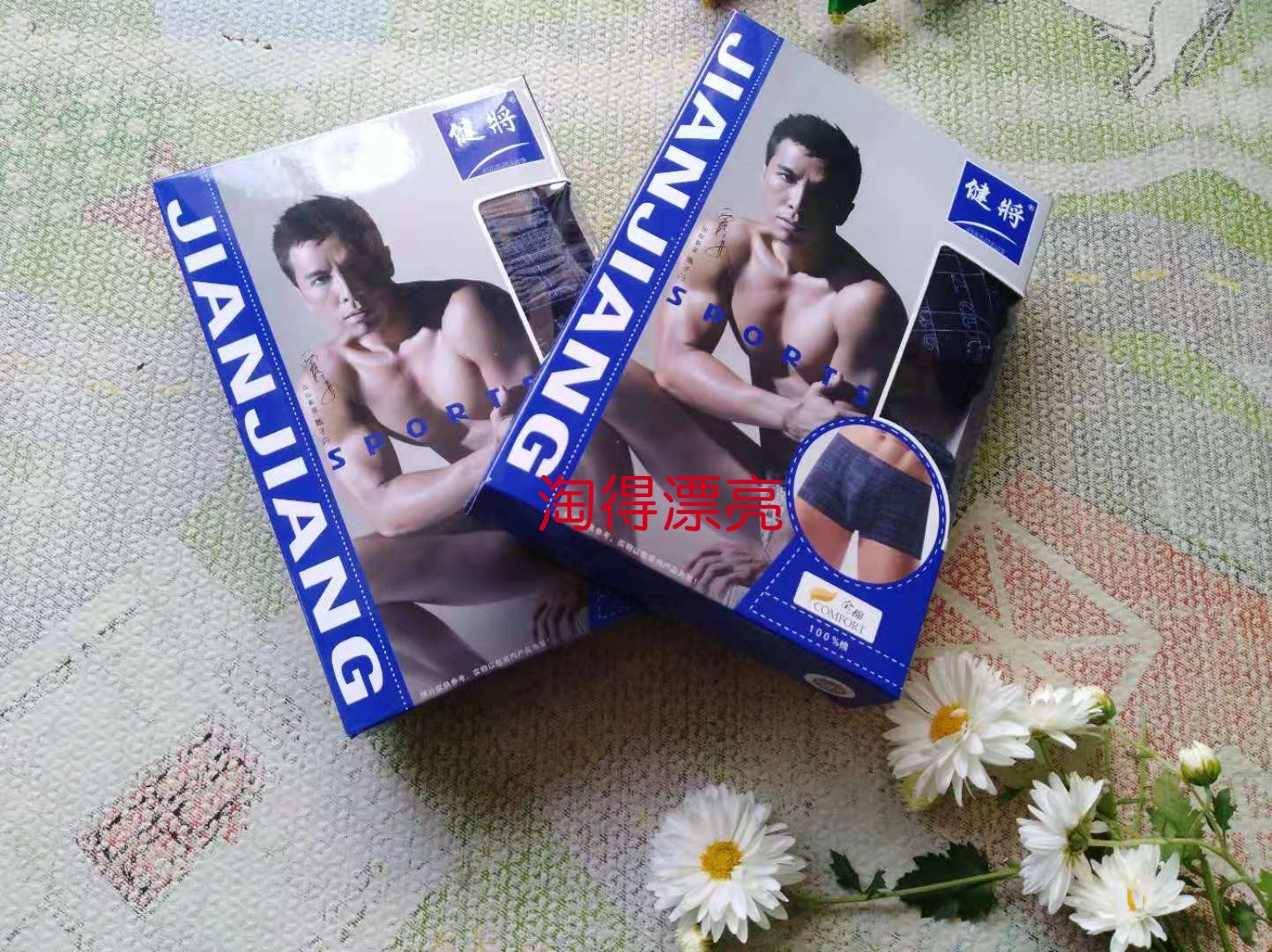 健将2条盒装男士纯棉U凸设计简约9542款透气吸汗宽松印花平角内裤热门设计联盟服务商
