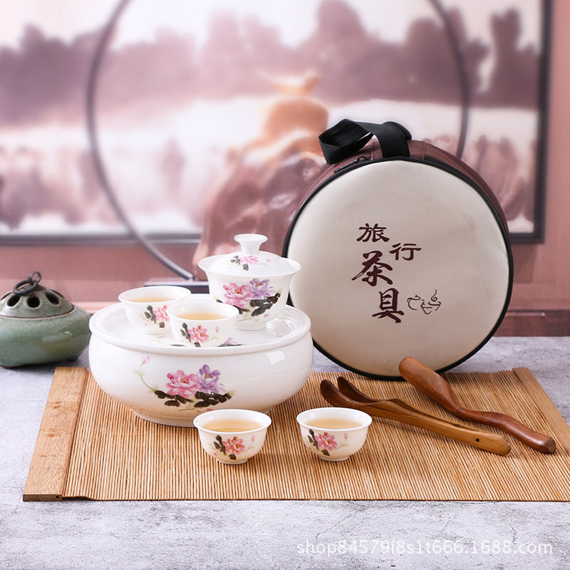 骨瓷礼品功夫茶具套装户外陶瓷整套旅行包一壶4杯便携礼品广告热门设计联盟服务商
