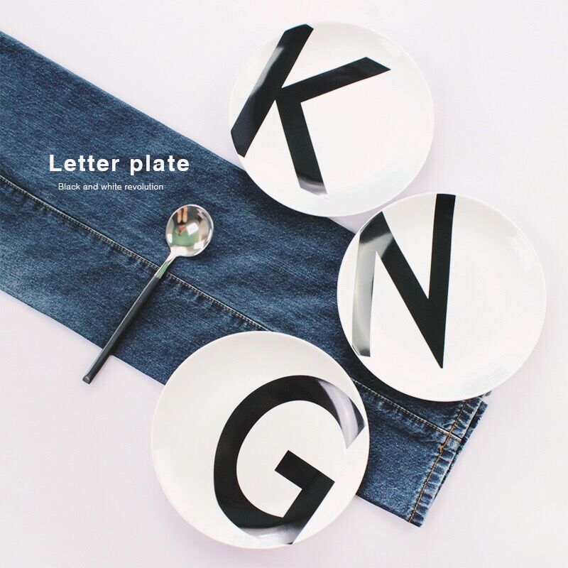 骨瓷创意个性 艺术黑白英文字母盘 8英寸浅盘家用水果圆盘菜盘子热门设计联盟服务商