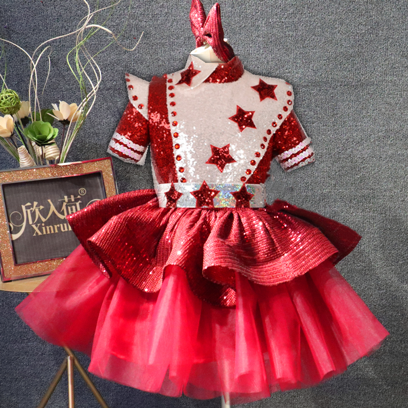儿童新款红色军六一团购合唱短款蓬蓬纱公主裙走秀舞蹈女童礼服热门设计联盟服务商