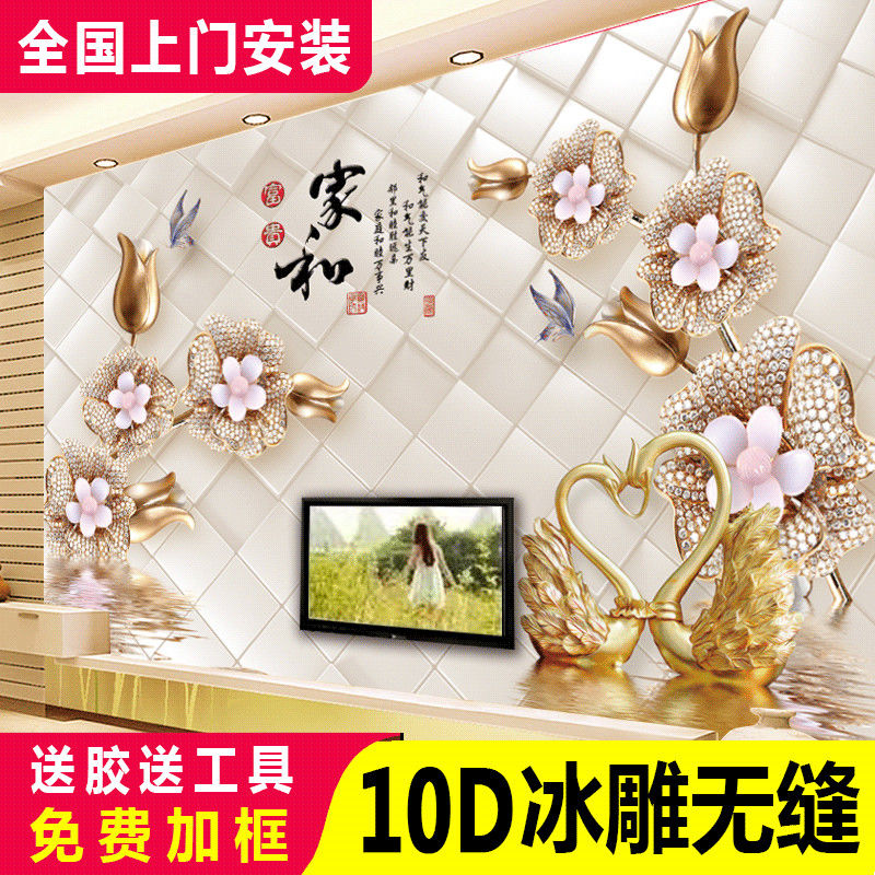 中式家和电视背景墙壁纸自粘3D立体新款客厅影视墙画线条无缝壁画热门设计联盟服务商